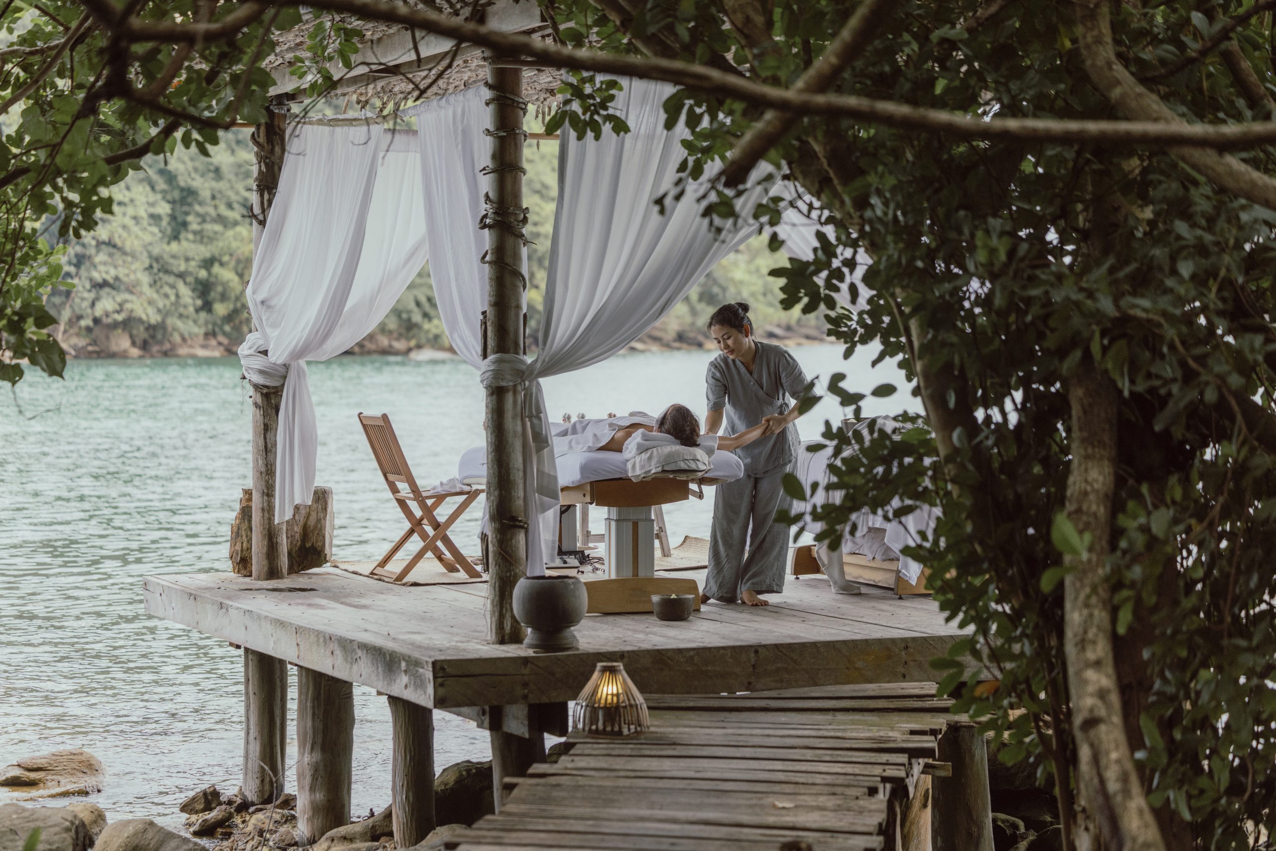 Saraan, meaning love in Khmer, draws on the Buddhist concept of metta, or loving kindness towards self, collective and environment. Offerings include salt room sound therapy, herbal steam rituals, Shirodhara oil treatments, Vichy showers, Buddhist blessings and nature based movement, alongside curated journeys such as Digital Detox, Sacred Sleep and Couple Connection, delivered in jungle sanctuaries, overwater salas and open air pavilions.